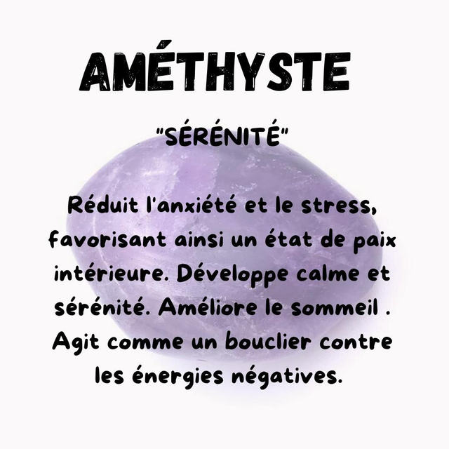 Le stress et les tensions émotionnelles peuvent perturber votre bien-être. L’améthyste agit pour apaiser votre esprit, libérer les pensées négatives et vous offrir un profond sentiment de sérénité
