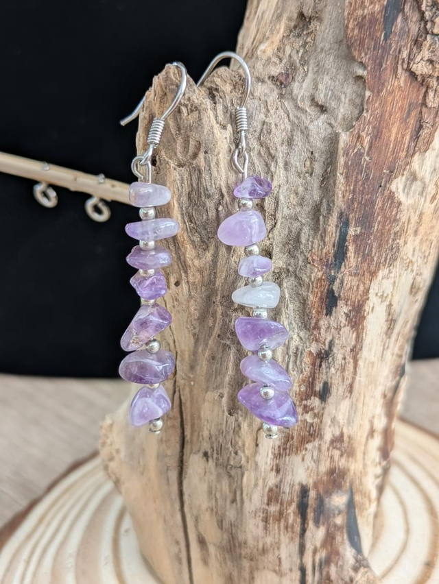 Boucles d'oreilles bohème Améthyste argent S925