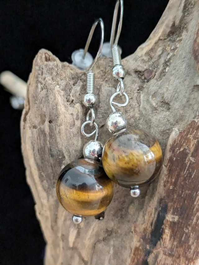 Boucles d'oreilles composées d'une perle en 10 mm en pierres d'oeil de tigre. Attache en argent S925.