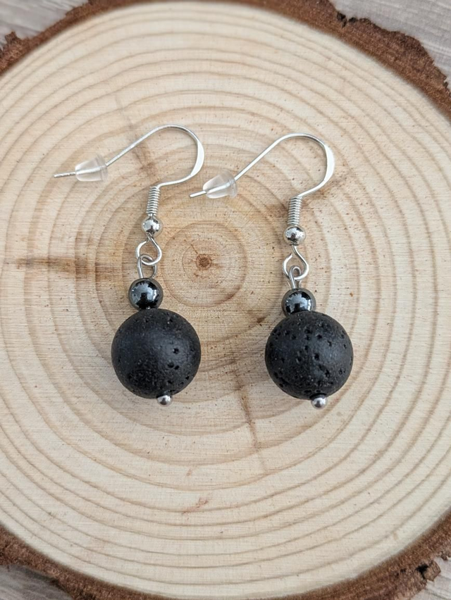 Boucles d'oreilles Pierre de lave/hématite argent S925