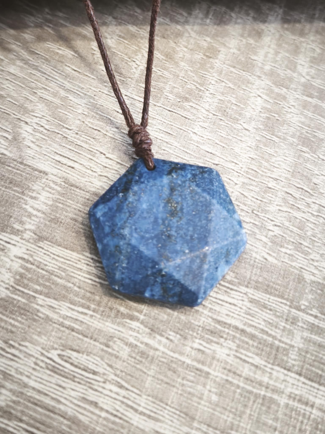 Magnifique pendentif hexagonale en pierre de Lapis-lazuli.
