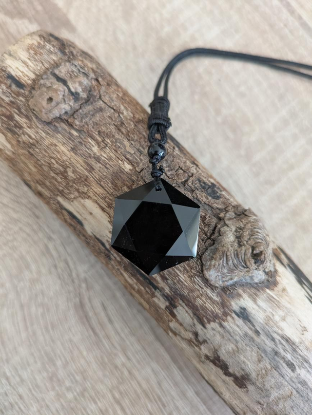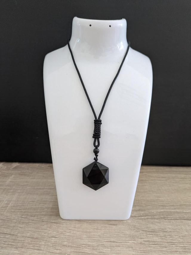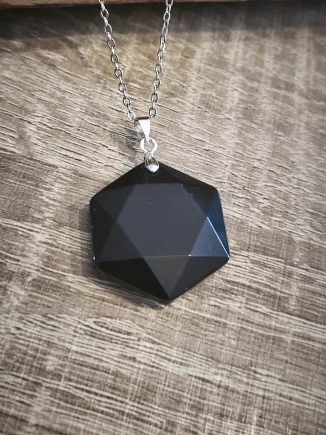 Magnifique pendentif hexagonale en pierre d'obsidienne noire.