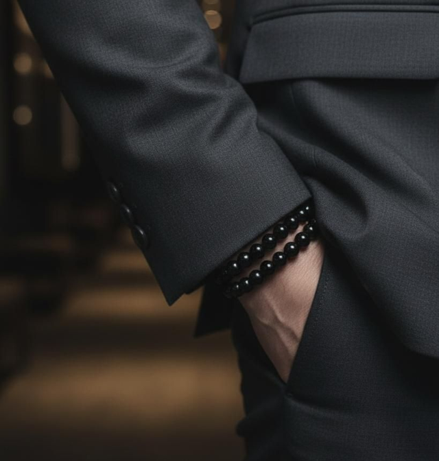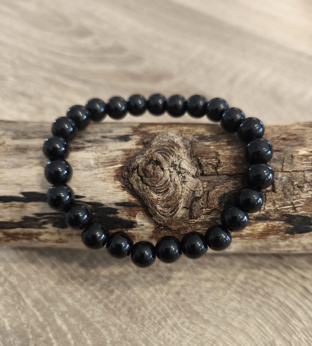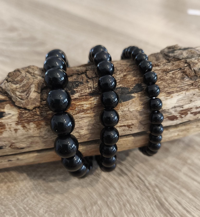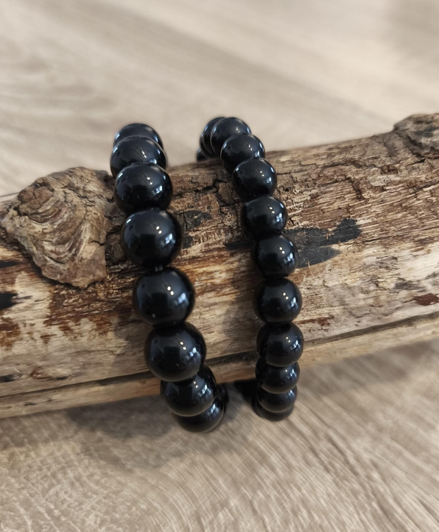 Bracelet composé de pierres naturelles d'obsidienne noire. Pierres brillantes opaques noires