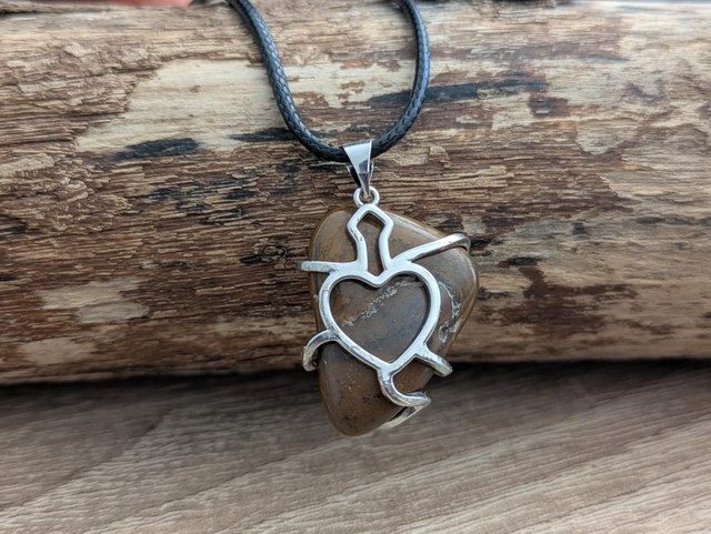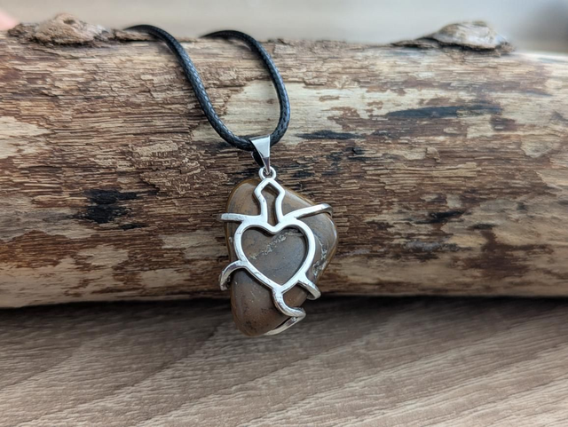 Véritable pierre d'oeil de tigre certie d'un coeur argenté. Monté sur un cordon noir avec chaînette de réglage. Longueur du cordon 20 cm jusqu'à 25 cm