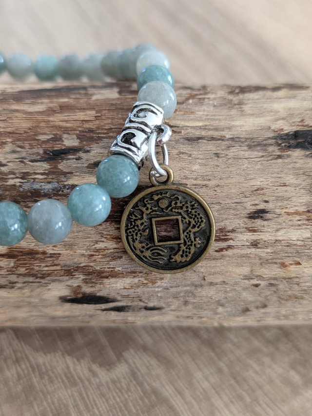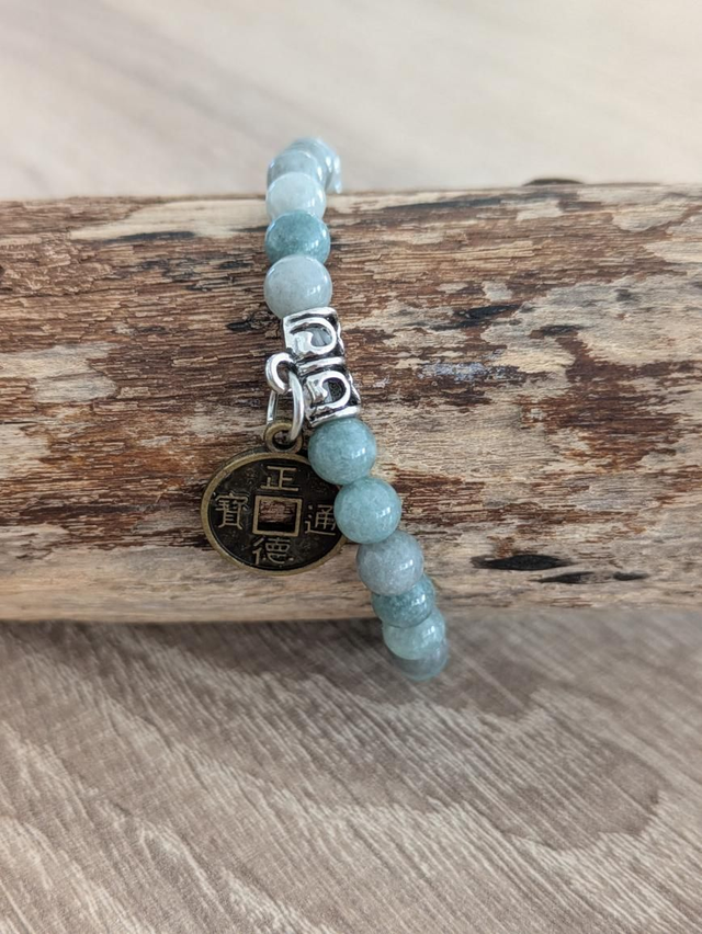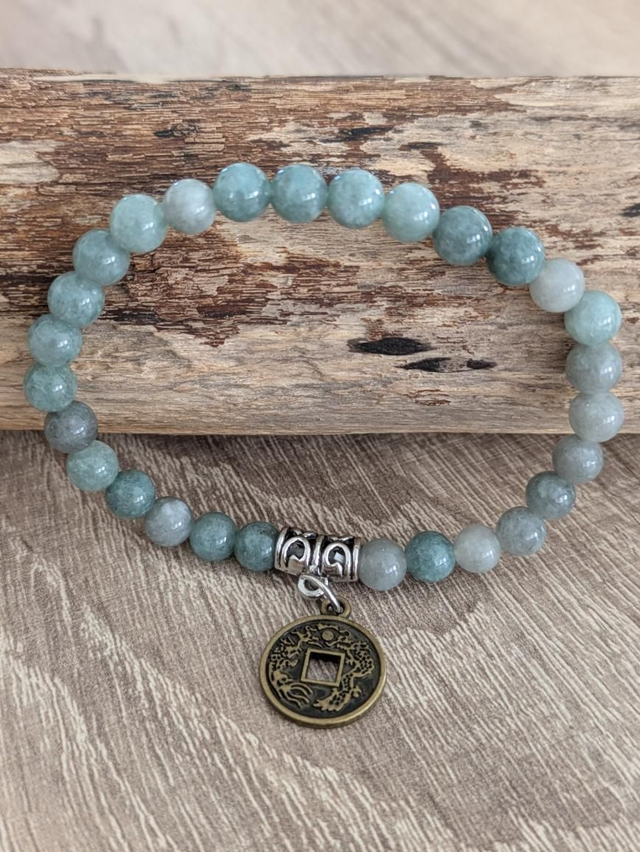 Magnifique bracelet composé de pierres de jade de Birmanie monté sur un élastique.