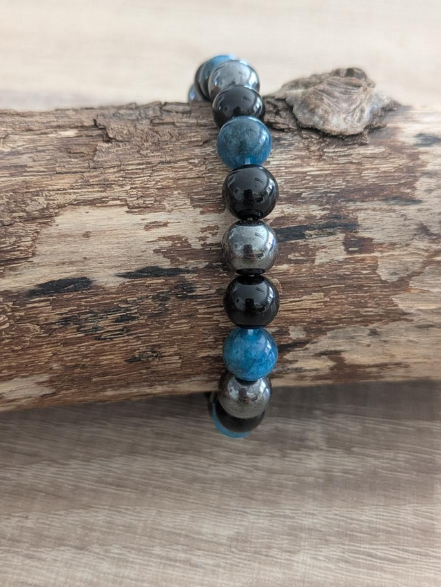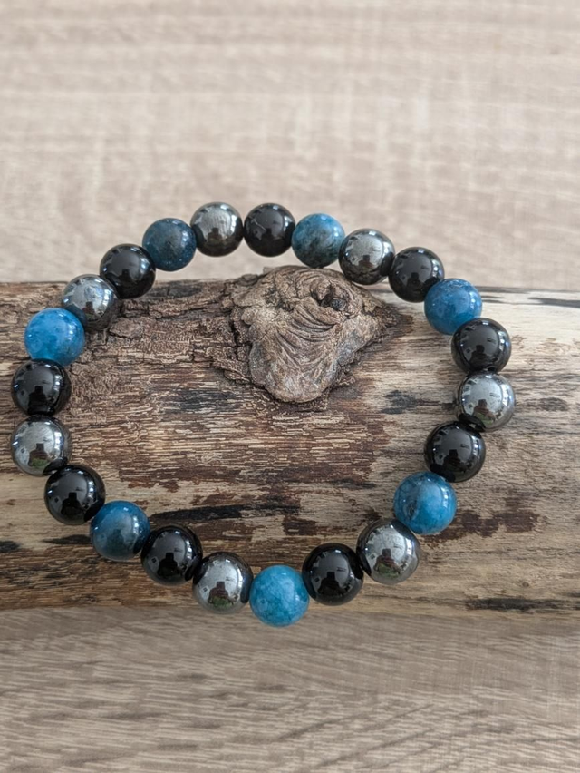 Bracelet triple protection composé de pierres d'apatite, d'hématite et d'obsidienne