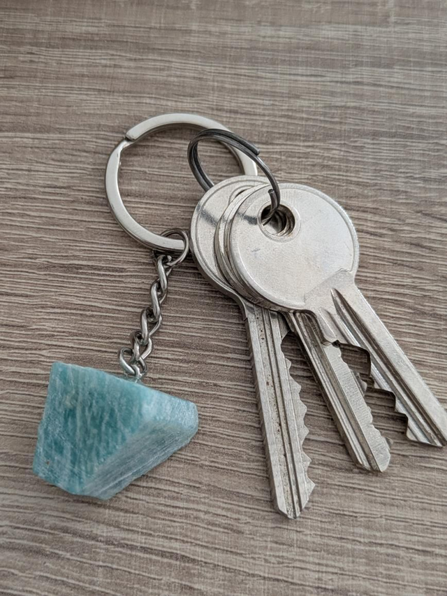 Magnifique pierre brute d'amazonite en porte clés